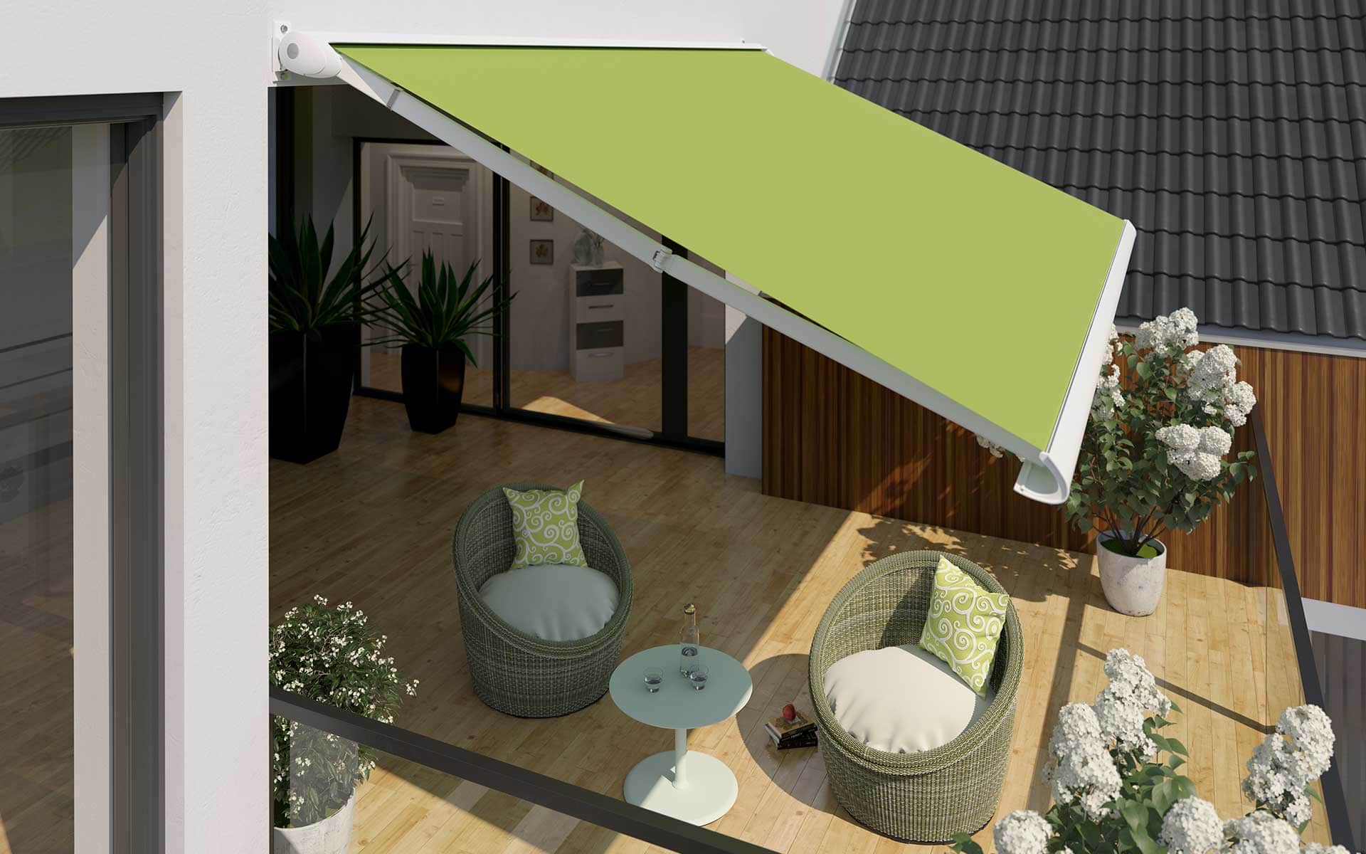 Als preisgekrönter Designklassiker aus dem Hause Lewens präsentiert sich die Markise Toscana in zeitlos eleganter Form und setzt modische Akzente bei der Gestaltung von Balkon und Terrasse. Besonderes Highlight: Die Toscana lässt sich mit einem besonders steilen Neigungswinkel montieren und schafft damit einen zusätzlichen Blend- und Sichtschutz.